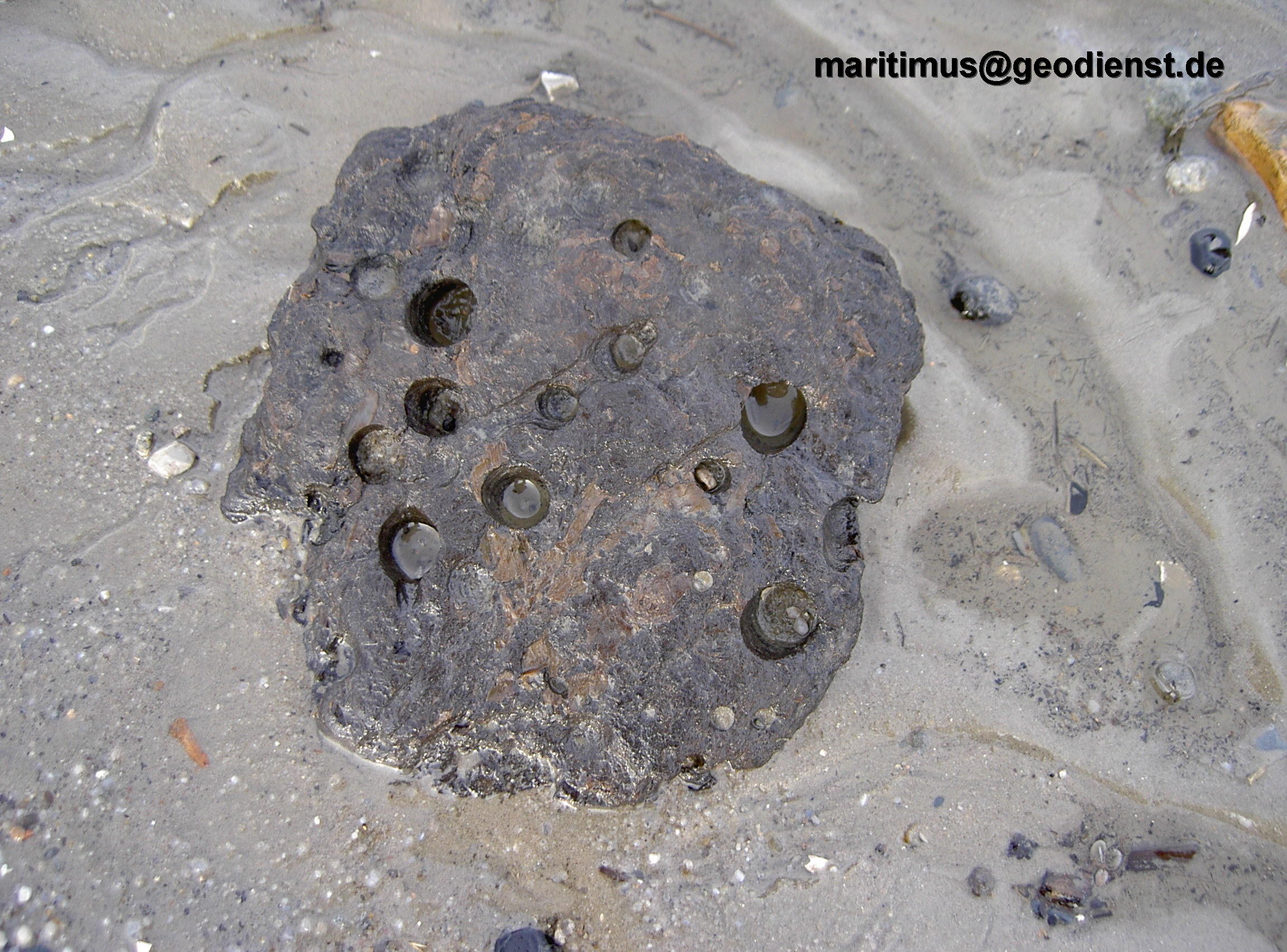 Torf mit Böhrlöchern von Muscheln vom Boden der Nordsee - angeschwemmt am Strand von Hooksiel / Gem. Wangerland